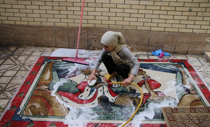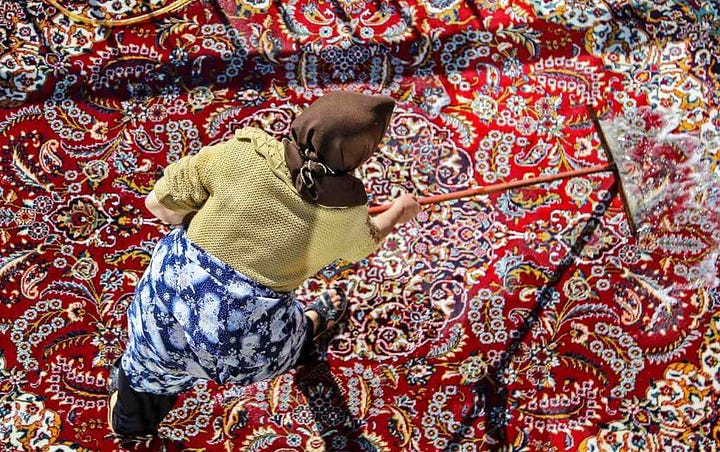 At the end of the year, Iranians perform a Khaneh Takani, literally shaking the house, to prepare for the new year. The process includes not only deep cleaning but also throwing away broken pots and plates, irreparable furniture, and torn or unused clothing. Rugs were beaten to remove dust, nooks and crannies were cleaned and patched, half-finished projects were either completed or tossed, and cluttered rooms were straightened. In the older times, when people still had home-made mattresses, the cotton filling was aired, and a new cover was sewn onto the mattresses and quilts.